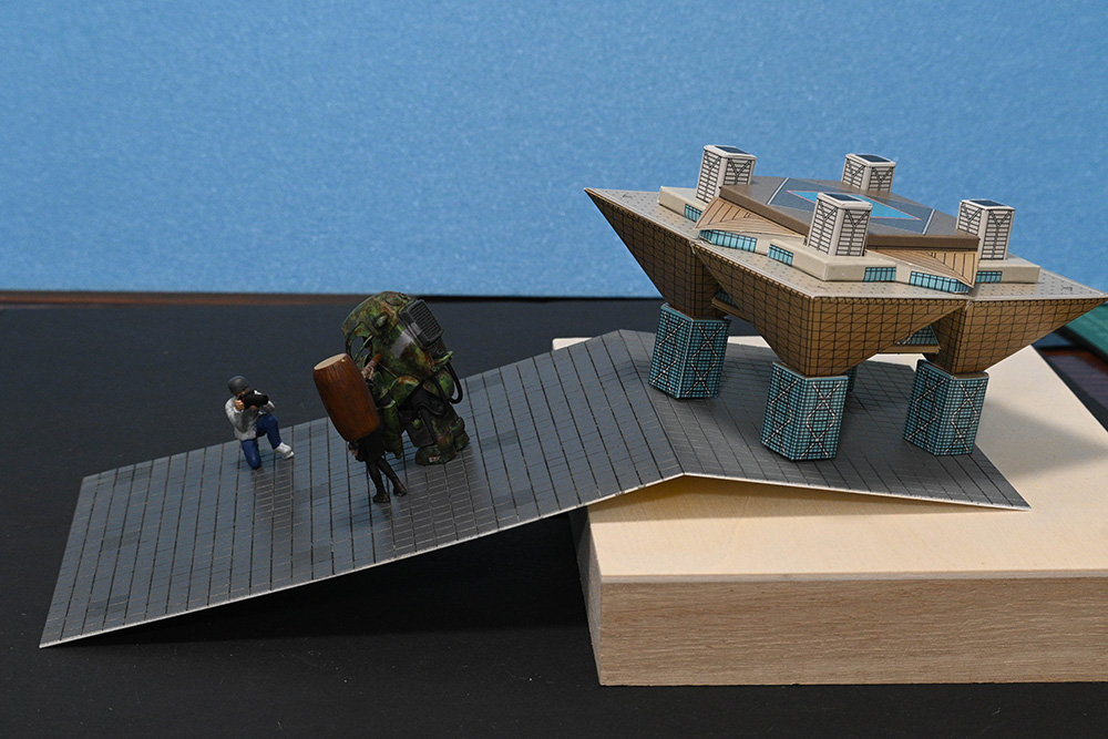 コスプレと言ったらコミケと思い、背景にペーパークラフトの東京国際展示場(東京ビックサイト)を置き、コミケ感を演出しました。