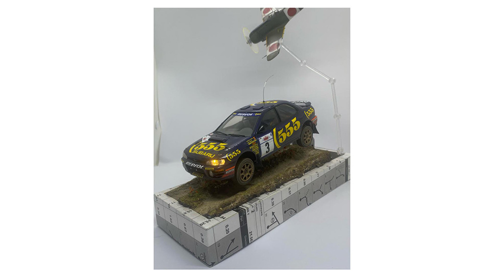フィギュアはタミヤのインプレッサWRC2001から流用。イメージジオラマなので、汚しは控えめにしました。