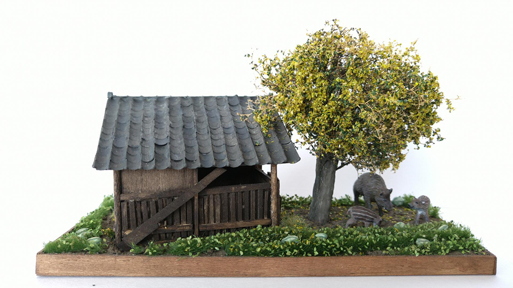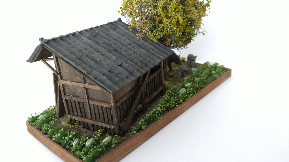 よくその前を通る近所の畑の小屋の風景が、どうにも気に入ってしまい、心から離れなくなってしまったので、ジオラマ化しました。
