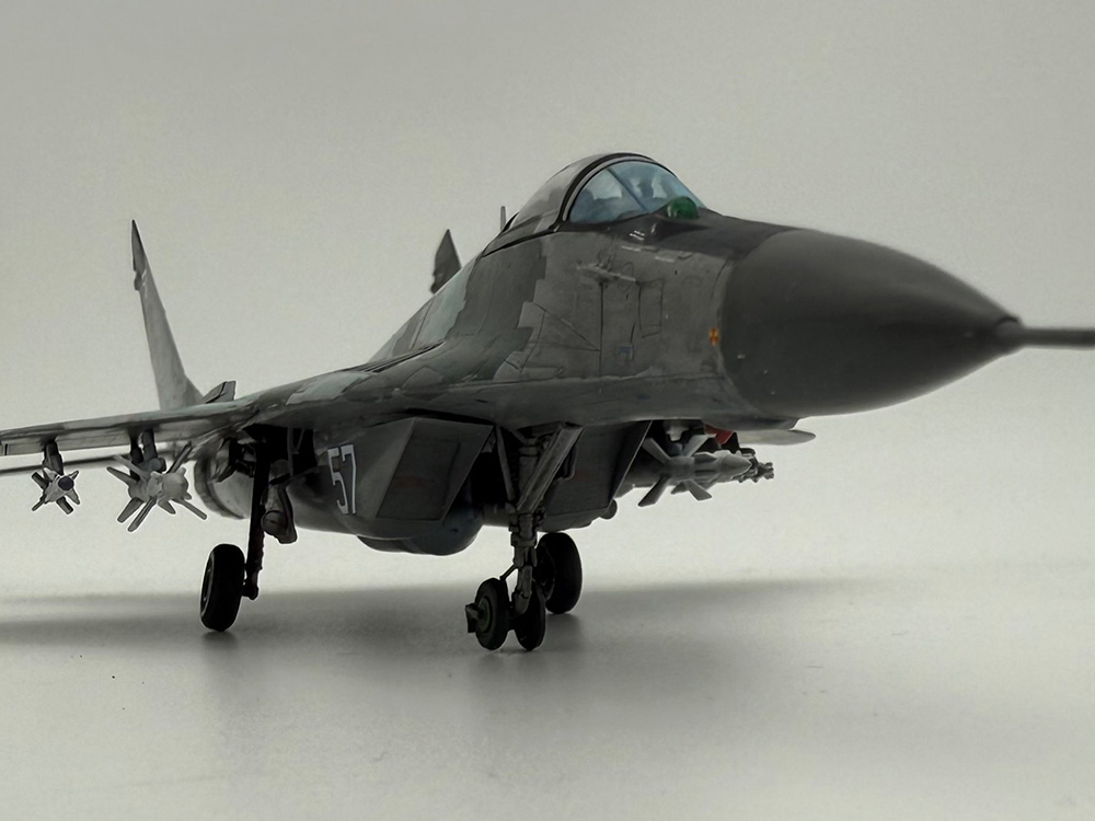 ウクライナ空軍の実機の画像を見ると、汚れの比較的少ないものからギトギトに汚れた機体まで幅がありますが、中間的な状態を目指して汚し塗装をしています。