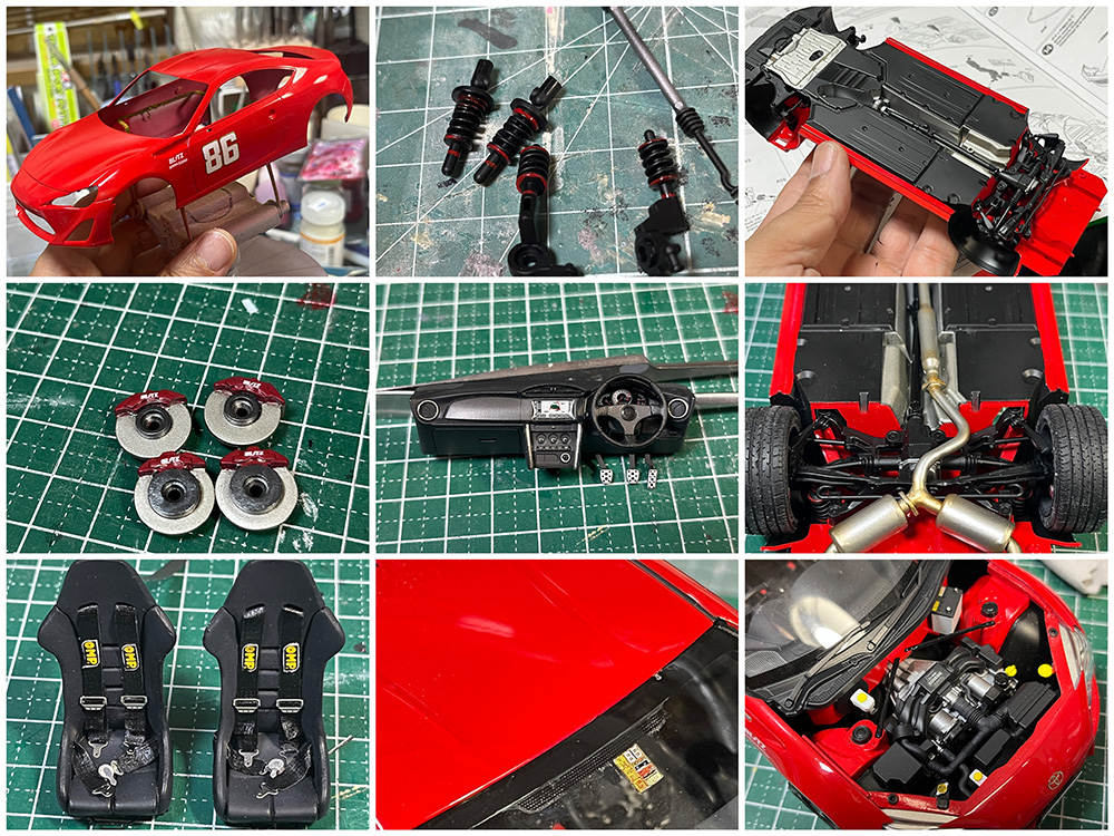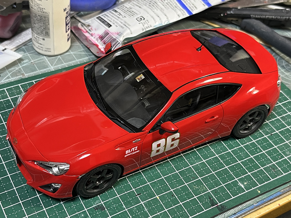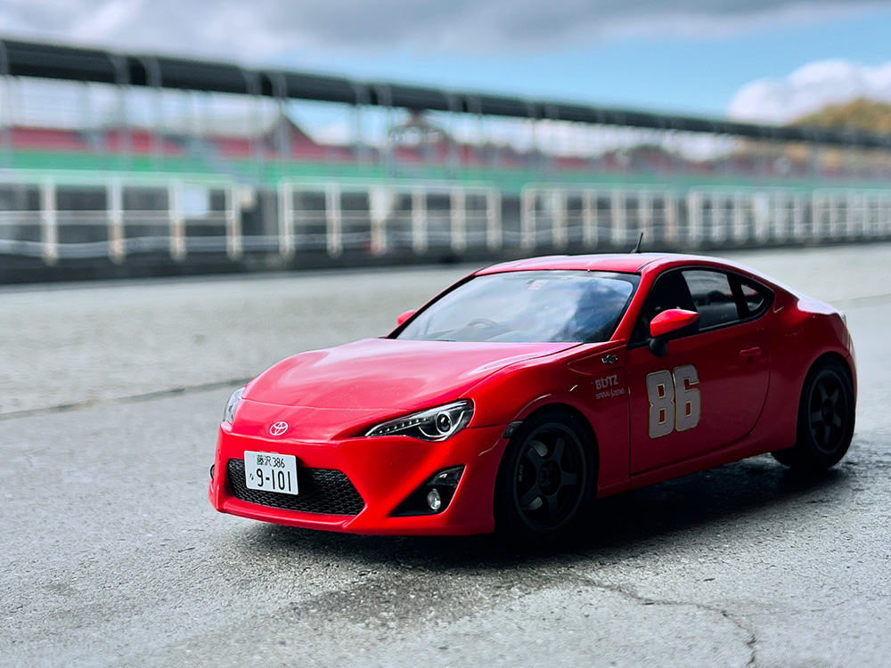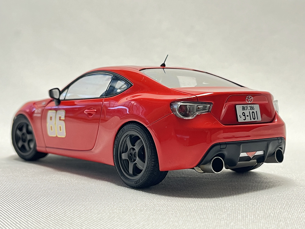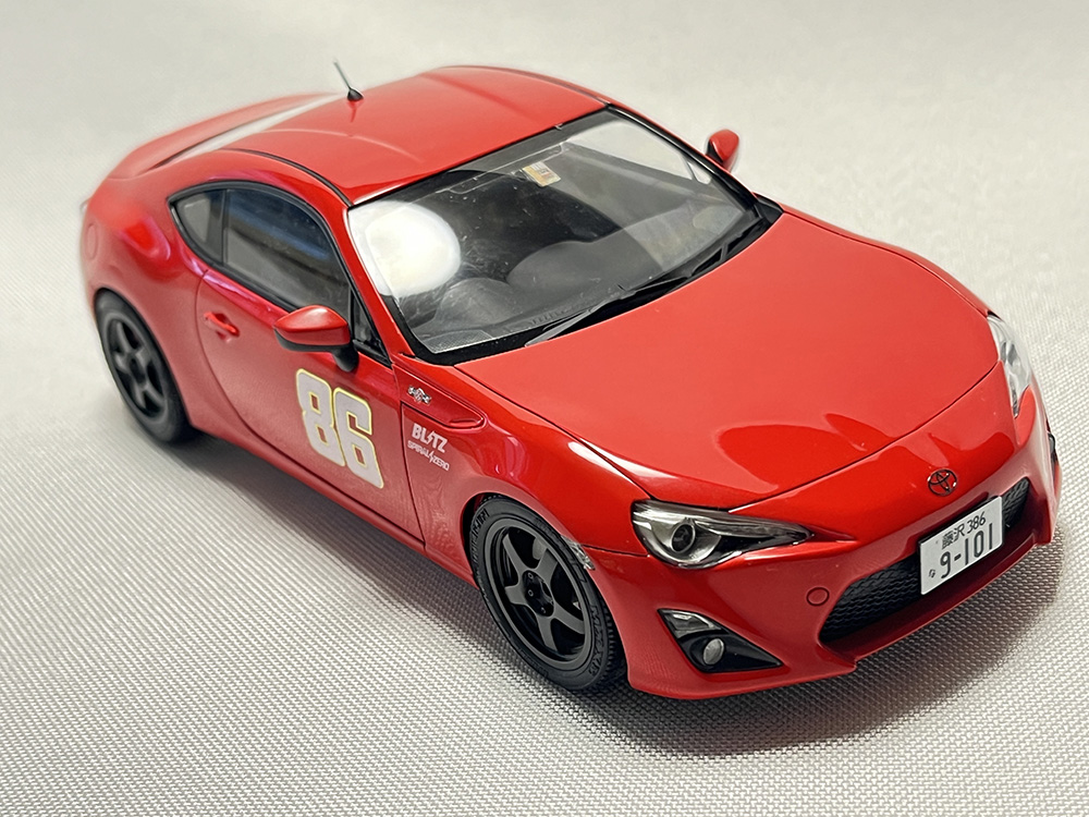 「MFゴースト」のカーモデルは、アオシマさんがコミック版を出されているのですが、私はこの作品をアニメから入ったので、ちょうど積んでいたタミヤさんの86からアニメ版を再現しました。