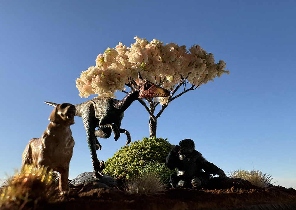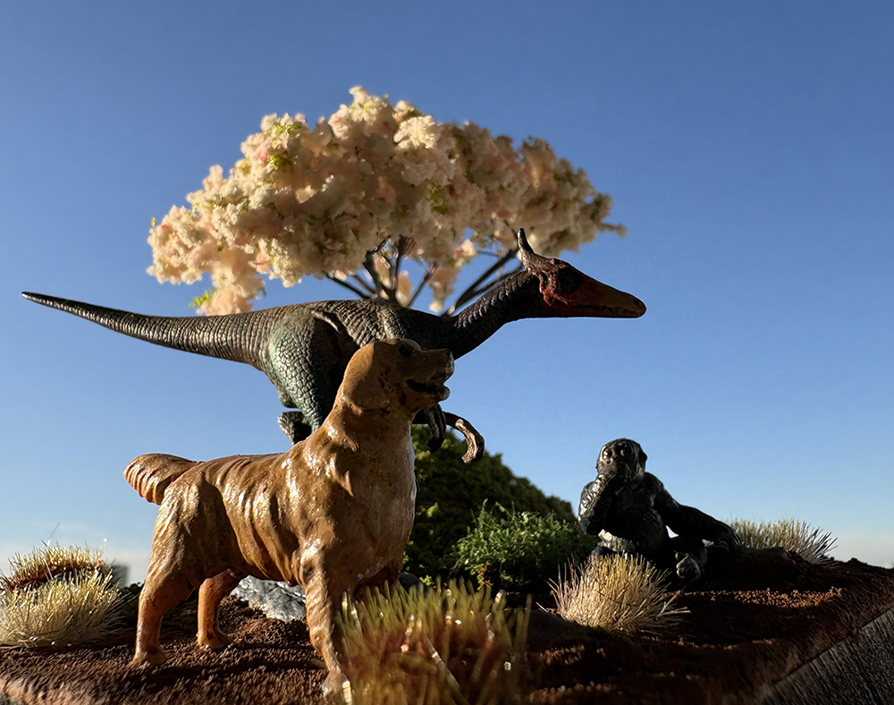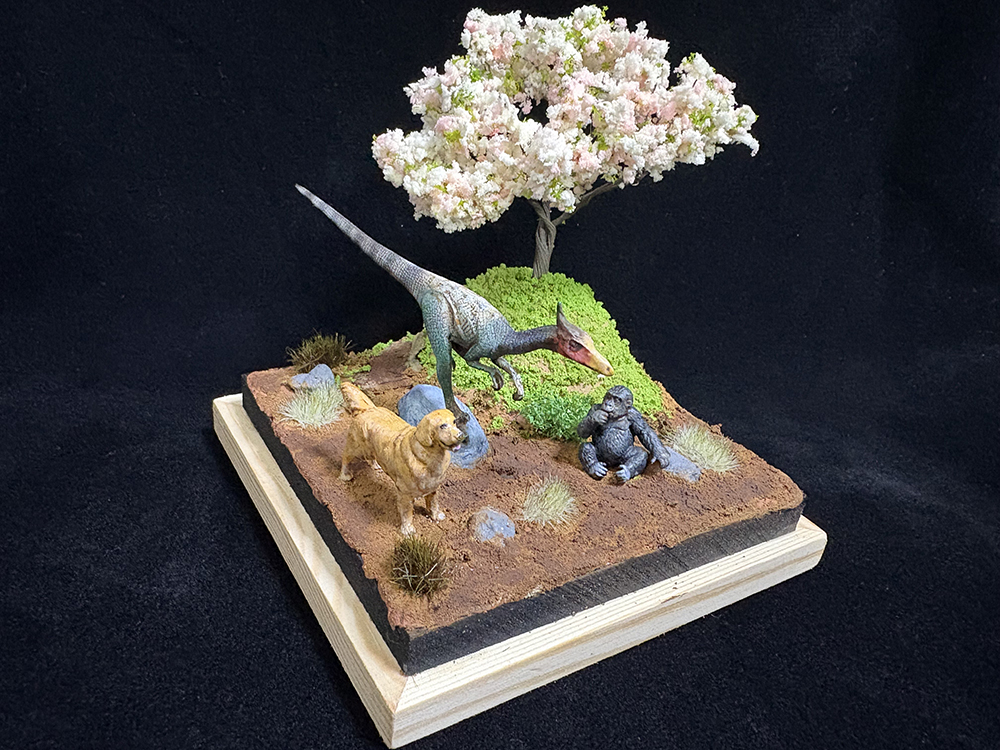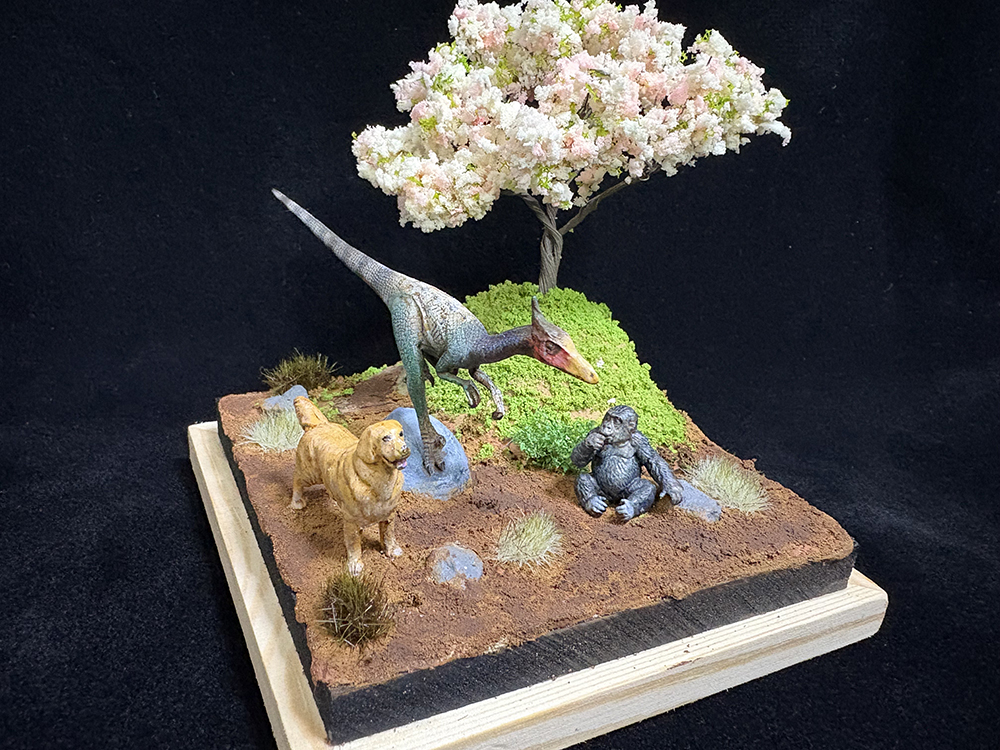 使用キット: タミヤ 動物セットⅡ、海洋堂 飼育員と仔ゴリラセット、タミヤ ベロキラプトル ジオベース 春