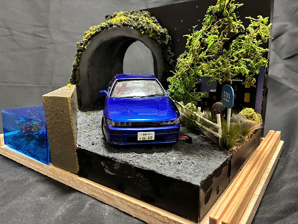今年は、車に詳しくないお二人へ車を作ろうと思い制作を始めました。その車は、シルエイティ、前半分シルビア、後ろ半分を180と2個1車です。
