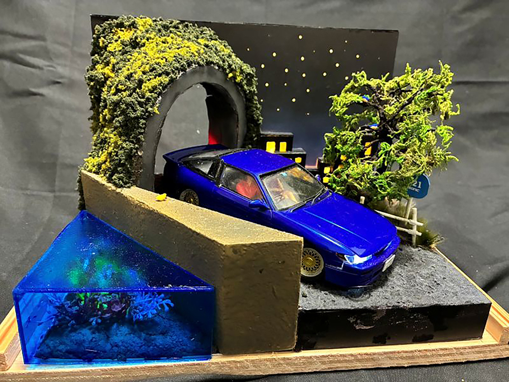 夜のドライブをイメージして、ヘッドライトとテールランプも点灯するよう頑張りました
