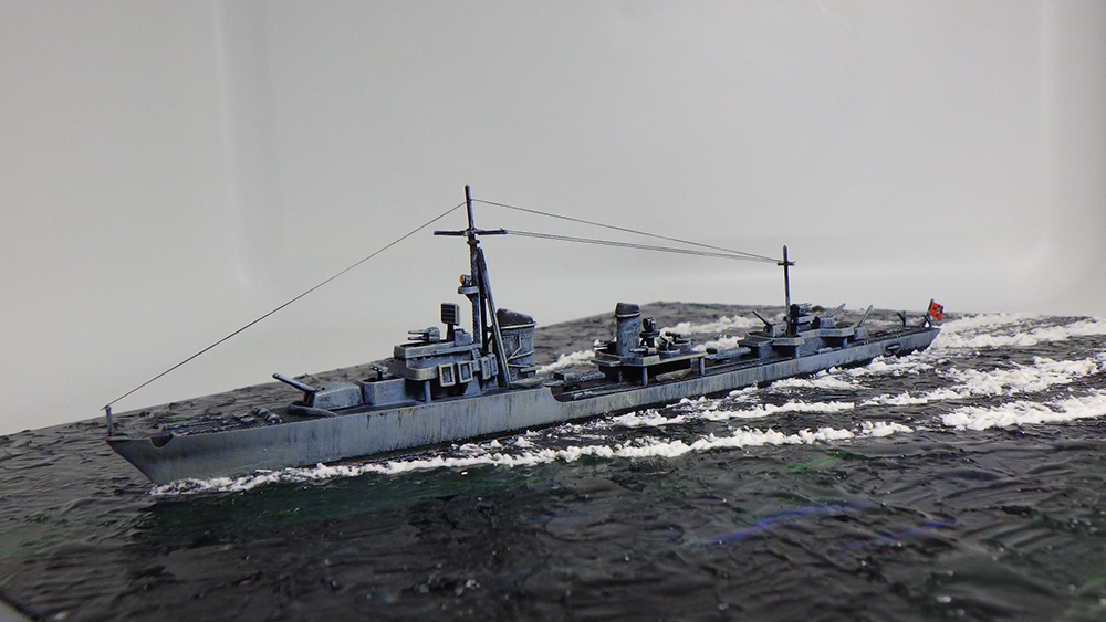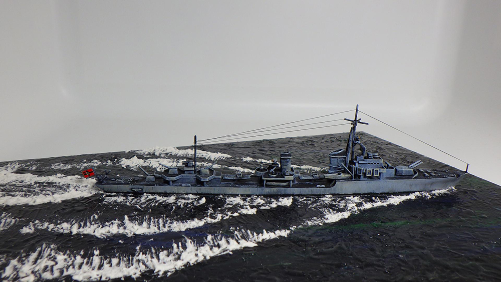 船体は黒立ち上げファレホ筆塗り情景と合わせて全体的にモノクロ写真のような雰囲気を目指しました!