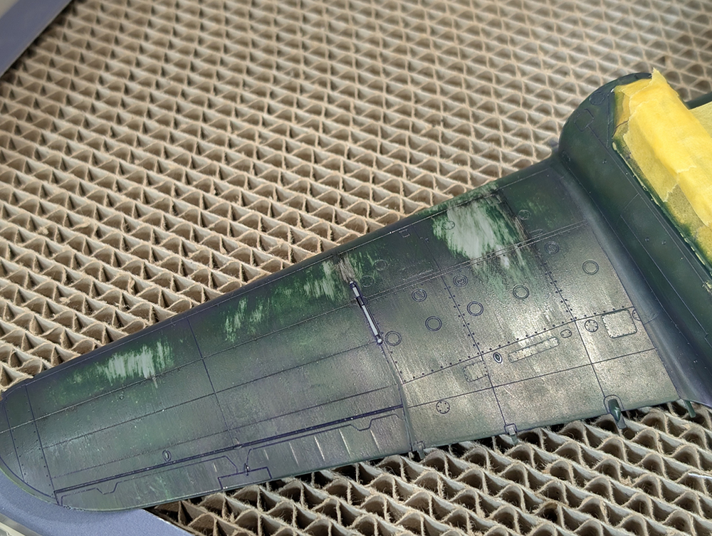 塗装は今回も複数のグリーンでムラを残しながら乗せていきました。日の丸塗装はサークルカッターを初めて使用したのですが