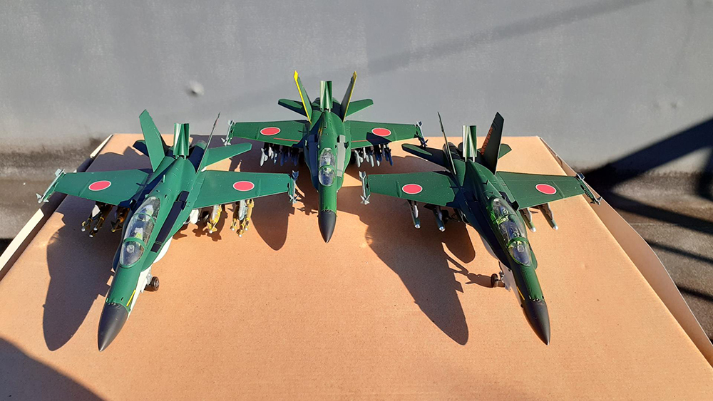 最初は単座型のみの予定が 複座型が作りたくなり 対艦装備作り出したら 対地装備も作りたくなり 結局3機も作っちゃいましたw
