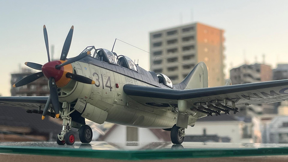 1番醜い格好の主翼折りたたんだ状態ではませんがこのズングリ、ムックリ感とペンギン塗装がなんとも良い感じになりました。